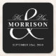 Mr Mrs Monogram Black White Wedding Square Paper Coaster