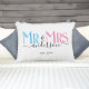 Celebrate your holy matrimony with this cute Mr. and Mrs. wedding pillow for newlywed couples. Customize it by adding your last name / surname and wedding anniversary year date. Pink, blue and black elegant font on white pillow. Great for a bridal shower or anniversary / wedding gift for a husband and wife.