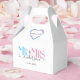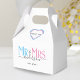 Celebrate your holy matrimony with this cute Mr. and Mrs. wedding party favour thank you box for wedding guests. Customize it by adding your last name / surname and wedding anniversary year date. Pink, blue and black elegant font with heart shape. Great for a bridal shower or anniversary / wedding reception dinner party for a husband and wife.