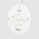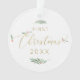 Our watercolor ornament is the perfect memento of your first Christmas as a married couple! The front side features your gold monogram in modern block lettering and your last name centred. The entire design is encircled in watercolor Christmas greenery and red berries with sprinkled gold confetti, as well as "Mr. + Mrs." The reverse side features "Christmas" in festive gold typography and the year. #MrAndMrs #Keespake #FirstChristmas