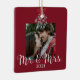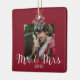 First Christmas ornament red. Photo double sided with Typography "Mr. & Mrs." with cute whimsical mistletoe. Personalize your marriage year and photo. Memorable wedding gift.