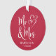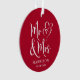 A keepsake red photo ornament for newlyweds with "Mr & Mrs" in an elegant white script and a white illustration of two hearts joined together. Add your name and wedding date. Add your wedding photo on the reverse side.