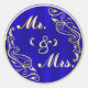 MR MRS Regal Golden Typography Royal Blue Wedding Classic Round Sticker