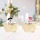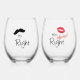 Mr & Mrs. Right Moustache Red Lips Wedding Stemless Wine Glass