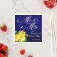 Chic, modern script typography Mr. and Mrs. cocktail napkins with a colourful bouquet of yellow roses on a navy blue background. Matching wedding invitations, cookie favours and other products available. Click the CUSTOMIZE IT button above to add text, remove the floral bouquet or change the background colour. Design by Cheryl Daniels © 2014. For questions, help or custom requests, click the CONTACT link below to email me.