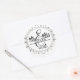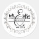 This round shape sticker is shown with a custom name Mr. & Mrs. print, personalize and change the name and year to yours with this template.