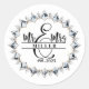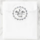 This round shape sticker is shown with a custom name Mr. & Mrs. print, personalize and change the name and year to yours with this template.