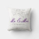 Mr & Mrs Wedding Simple Floral Silver Purple Throw Pillow