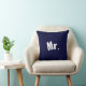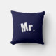 Unique Navy blue accent Pillow. Mr. in White. Perfect accent decor for any room