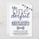 Mr Onederful Birthday Invitation, Blue & Silver Invitation