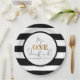 These cute black and white striped Mr. Onederful paper plates come in a variety of shapes and sizes.