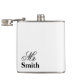 Mr Personalized Name White Black Flask. Mr Smith (Add your own text in place of 'Mr' and 'Smith').