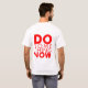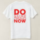 White T-shirt with red lettering.