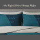 Bring humor and love into your bedroom with this charming set of 2 standard pillowcases! Featuring the playful phrases “Mr. Right” and “Mrs. Always Right”, these pillowcases are perfect for couples who enjoy a little laughter along with their love.