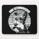 Black and white portrait of a mini schnauzer with glasses on a sunset background in vintage style. The perfect gift for schnauzer lovers.