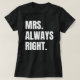 "Mrs. Always Right." - Because we all know who really holds the title of ultimate decision-maker in the house! Get a chuckle with this witty tee that celebrates Mrs. Right's authority.