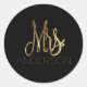 Mrs. Anderson Black Gold Typography Envelope Seal Typography Black and Gold Elegant Stickers, you can change the family name