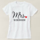 Custom Mrs T-Shirt shirt design with modern stylish script and red heart accent can be personalized with the bride's last name. Makes a great wedding gift for the honeymoon!