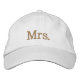 This Mrs. Cap is shown in White with Gold embroidered text.