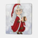 A cheerful character dressed in a festive red cloak and hat, with fluffy white trim.