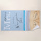 Mrs. Dusty Blue Beach Wedding 2 Hearts Sand | Her bride's Beach Towel with newlyweds names "Honeymoon vibes", beach towel.