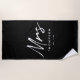 A simple minimalist black background and white script text "Mrs" beach towel that can be customized to your surname and established date. An ideal gift for newlyweds, bridal showers, wedding gifts. Customize the text and make it your own.