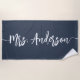 Celebrate your new bride status with this custom navy blue beach towel featuring your new last name in white hand lettered signature script lettering with beginning and ending swashes. Makes a great wedding, shower or honeymoon gift.