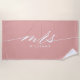 Mrs. personalized beach towel. Design features typography script in bold black lettering ''mrs'' on a blush background. Makes a perfect gift for honeymoon or as a keepsake for newlyweds. Personalize further with a name.