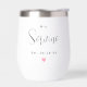 An elegant Mrs thermal wine tumbler featuring refined script with a custom last name monogram and established wedding date, accented by a delicate pink heart. The graceful typography on a clean white tumbler creates a sophisticated bridal keepsake. A beautiful gift for the bride on her wedding day, bridal shower, or anniversary. Pairs with the matching Mr tumbler. All text is fully customizable.
