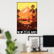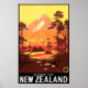 Vintage travel poster reproduction of Mt Egmont New Zealand. Mountain landscape with trees in foreground on a retro style. A restored reproduction & great wall art.