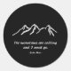 This round sticker features a bestselling & unique mountain silhouette design that looks like the mountains are covered in snow, on top of a black background. The popular quote from Naturalist John Muir: 'The mountains are calling and I must go.' is underneath. Show your love for the mountains! There are many different sticker shapes to choose from.