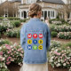 I just got my Sheltie jean jacket and I have to say the size chart was a little big. I had my dog names put on it chose blue. I expected the letters larger which is why I close blue so they would stand out. The size they are I can hardly read them. The jacket is great but I am not happy with it, Thank You MARY.