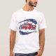 White kickboxing t-shirt with red and blue muay thai design on the front.