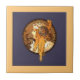 This tile features a reproduced illustration by Alfons Mucha one of the best known artist working during the Art Nouveau period in the late 19th C. This image depicts a lady with flowing auburn hair, wearing a jewelled head dress. The background and edging colours match her the colours of her crown and gown. Use your tile as is or choose the option to frame, as a trivet, or place it on a gift box.