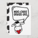 Muchas Gracias vache à thème Merci beaucoup Carte de remerciements amusant de Ricaso - avec une vache tenant un grand coeur d'amour rouge et les mots Moo-chas herbe-ias un jeu de mots humoristique carte de vache à thème avec la vache spotty noir et blanc motif à l'arrière