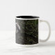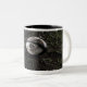 Muddy rugby ball sitting on a chewed up grass Two-Tone coffee mug