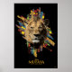 This bold graphic for Disney's "Mufasa: The Lion King" showcases a powerful portrait of Mufasa, the legendary king of the Pride Lands. Framed by vibrant, colourful tribal patterns, the design pays homage to African culture, celebrating the rich heritage and symbolism of the savanna. The intricate patterns evoke a sense of history, community, and the diverse tapestry of life that Mufasa protects. Mufasa’s strong and majestic gaze reflects his strength, wisdom, and the weight of his destiny as a ruler. This poster encapsulates the themes of legacy, tradition, and the regal spirit of the Lion King.