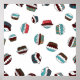 Muffin. Happy birthday cupcake background in white, brown and blue. Seamless. Cupcake pattern. Cupcake pattern background.