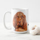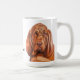 this is a unique mug with the image of the oil painting of the brown bloodhound done by yaneyaart