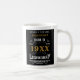 Dites Joyeux 40e anniversaire. Ajoutez votre nom et votre année à cette tasse de café d'anniversaire personnalisée. Une magnifique carte d'anniversaire noire personnalisée, de style vintage blanc et or typographie. Plus de cadeaux et de fournitures de fête disponibles avec le design "légendaire" dans le magasin.
