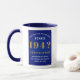 Une superbe tasse bleue et or de 80ème anniversaire pour cette personne spéciale. Customisez facilement le texte à l'avant et à l'intérieur de cette tasse de café d'anniversaire en utilisant le modèle fourni. Une partie de la gamme de normes d'établissement des dessins et modèles.
