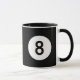 Une tasse à huit boules ou des personnes qui aiment une boisson chaude en jouant au billard.