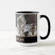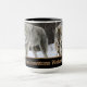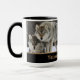 Cette tasse à café en céramique est montrée avec une photo de loups sauvages dans le parc national Yellowstone. Tan accents avec intérieur noir et poignée. Customisez cet objet ou achetez tel quel. Image stock