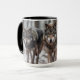 Cette tasse à café en céramique est montrée avec une photo de loups sauvages dans le parc national Yellowstone. Intérieur et poignée de couleur noire. Customisez cet objet ou achetez tel quel. Image sous licence