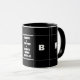 Un design élégant, humoristique, noir et blanc d'échecs sous-titré avec : Échecs + café = Échec et mat au monde ! Il est également monogrammé avec les initiales du bénéficiaire (J B). Facile à personnaliser et édité.