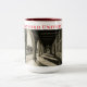 Une photographie sépia capture une longue allée voûtée construite en pierre sur le campus de l'Université de Stanford. La promenade est bordée de piliers et d'arcs d'un côté, et d'un mur en pierre avec des ouvertures en forme de fenêtre de l'autre. La lumière du soleil traverse les arches, créant de fortes ombres sur le sol carrelé. Dans l'arrière - plan, un jardin arboré et couvert de haies manucurées est visible.
