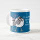 Un amusant café-mug de taille Jumbo, avec deux moutons et deux coeurs comiques, tiré d'une illustration dessinée à la main par Judy Adamson. Vous pouvez modifier ou supprimer le texte et également modifier la couleur bleue de l'arrière - plan.