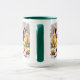 An adorable Boston Terrier dog sitting in illuminated Christmas lights seasonal festive coffee mug.