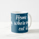 Chez moi c'est là que mon chat est blanc script navy tasse de café marine. Parfait pour l'amoureux des chats.