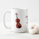 A mug with an illustration of a brown acoustic violin and a customizable text. Perfect for a violinist, a violin teacher or lovers of music!